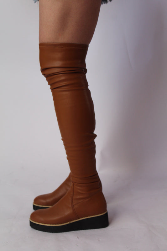 Free People Pre-loved Over the Knee Brown Pleather Boots - Size 7