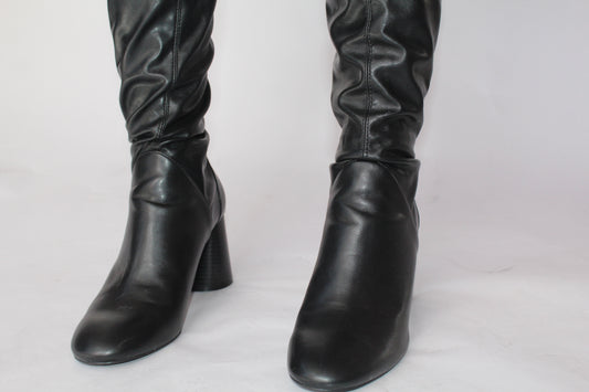 Zara Pre-loved Black Over the Knee Pleather Boots - Size 7