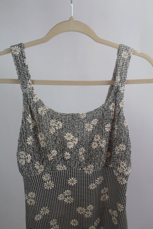 Women's Black/White Plaid Floral Mini Dress Size XS