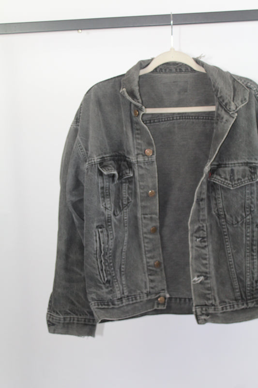 Women's Vintage Levi's Dark Grey Distressed Denim Jacket Size Medium