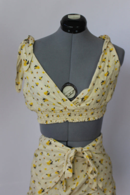 L.A. Hearts Cropped Yellow Floral Top Large