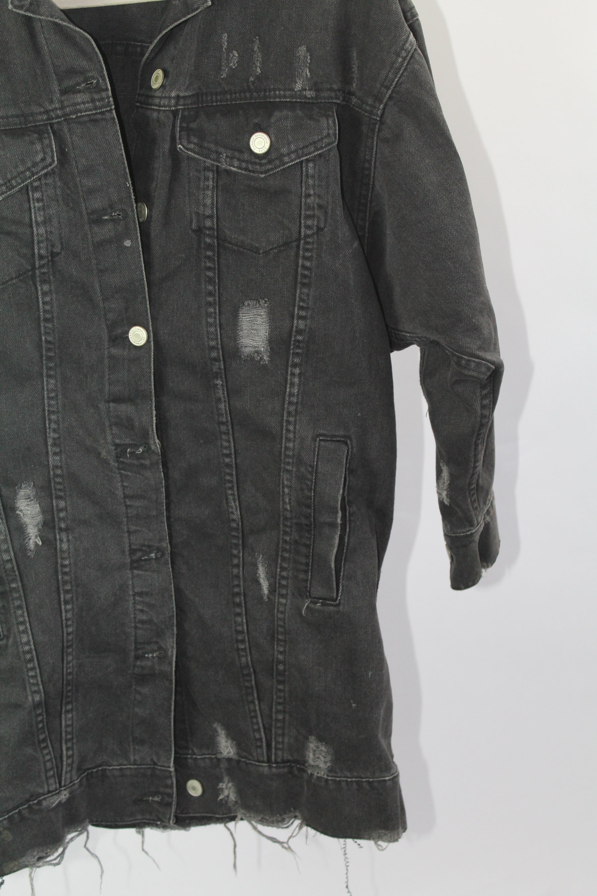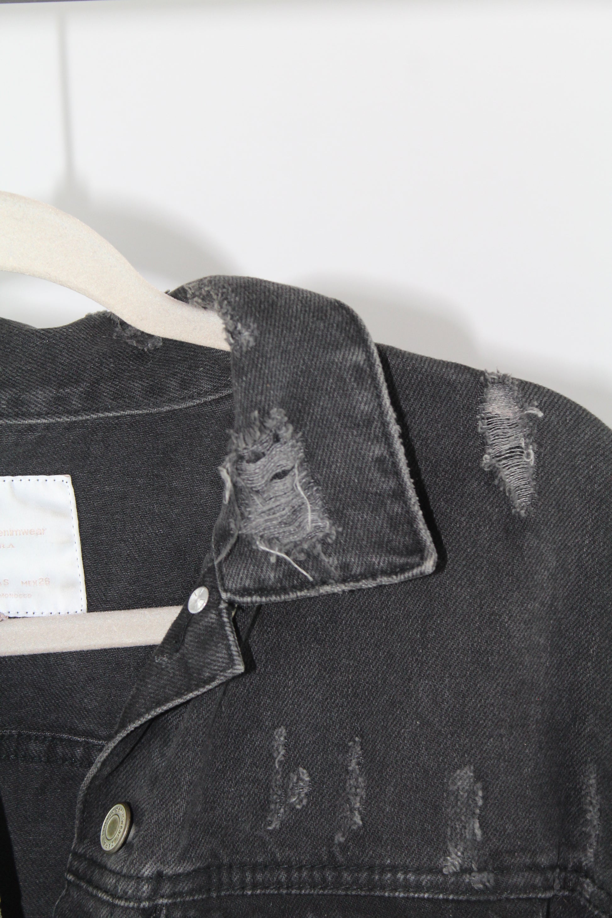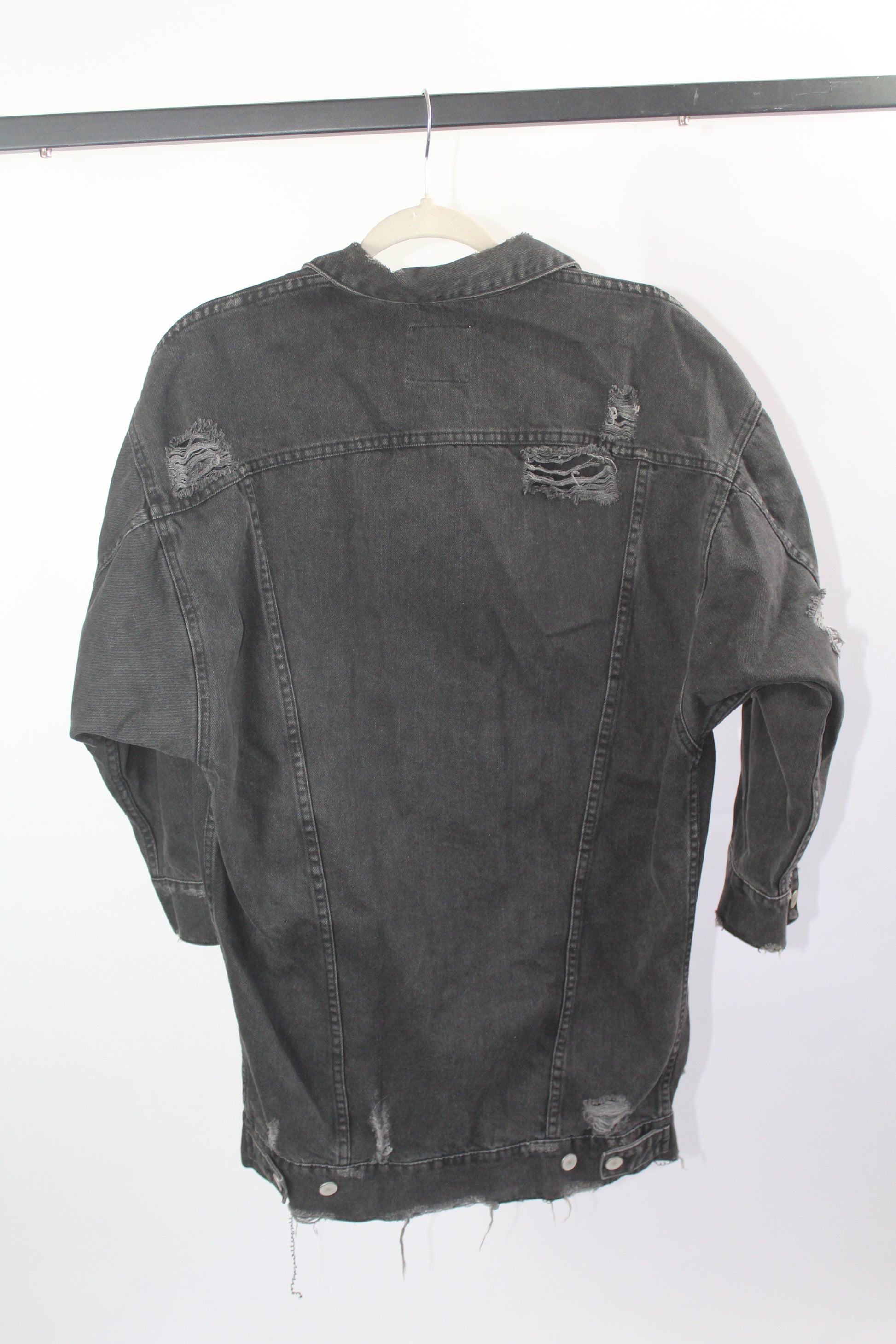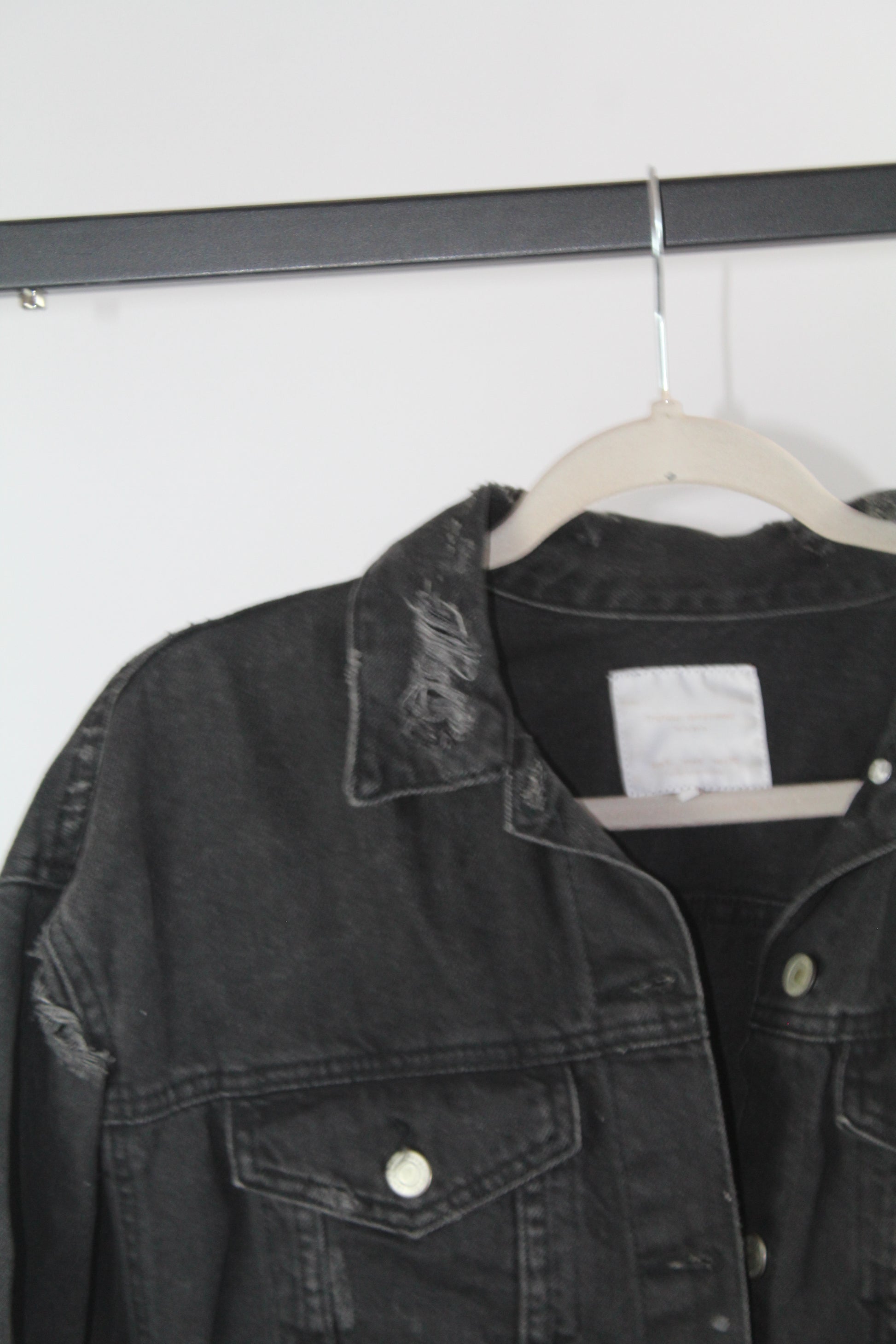 Add an effortlessly edgy touch to your outfit with this Zara Trafaluc distressed denim jacket in size small. Featuring a classic light-wash finish with trendy frayed details, this jacket is your go-to outerwear for laid-back, streetwear-ready style. Layer it over dresses, tees, or hoodies for an always-cool look.