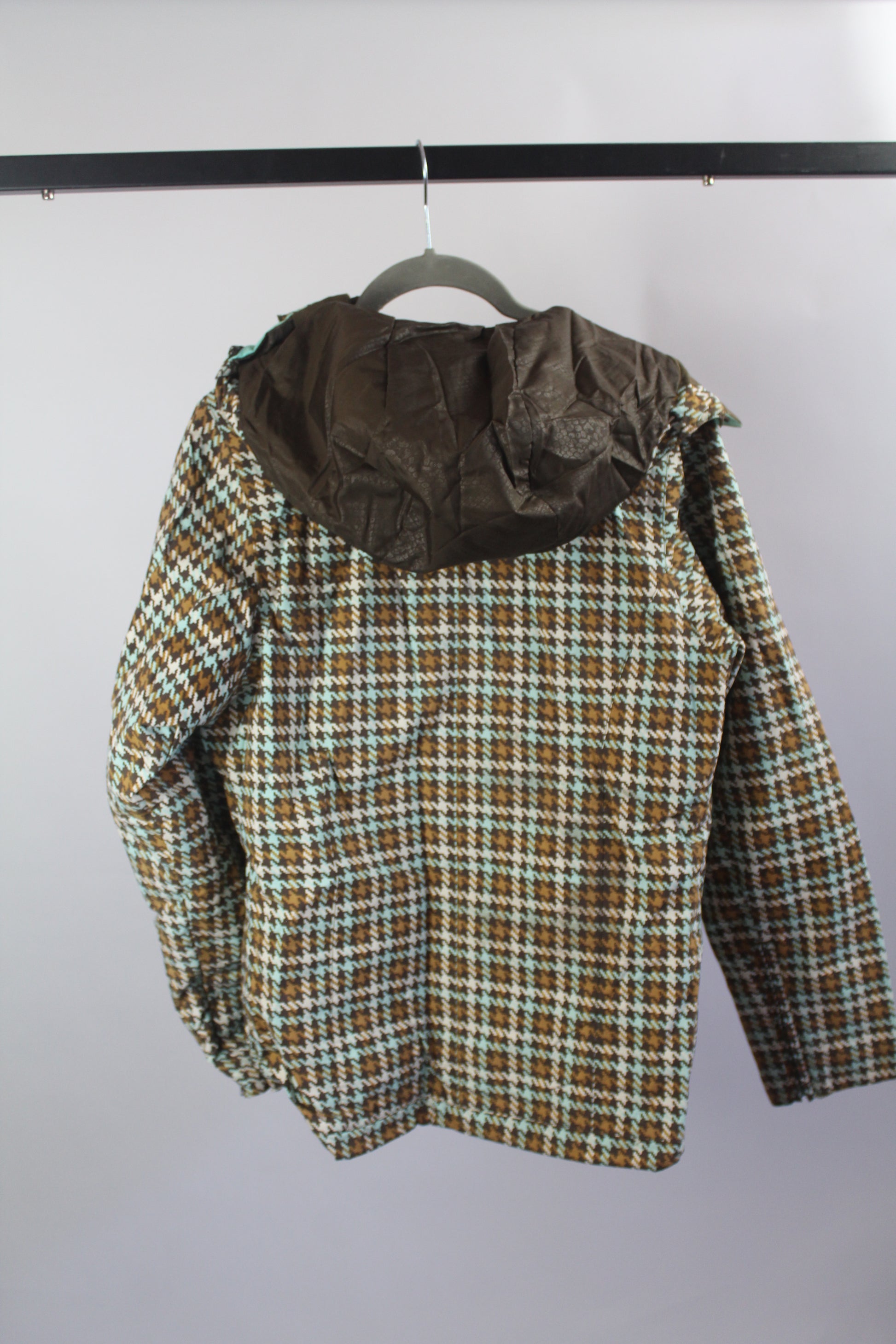 Tackle winter in style with this brown plaid snow jacket by Burton, size small. Rugged, warm, and snow-ready.