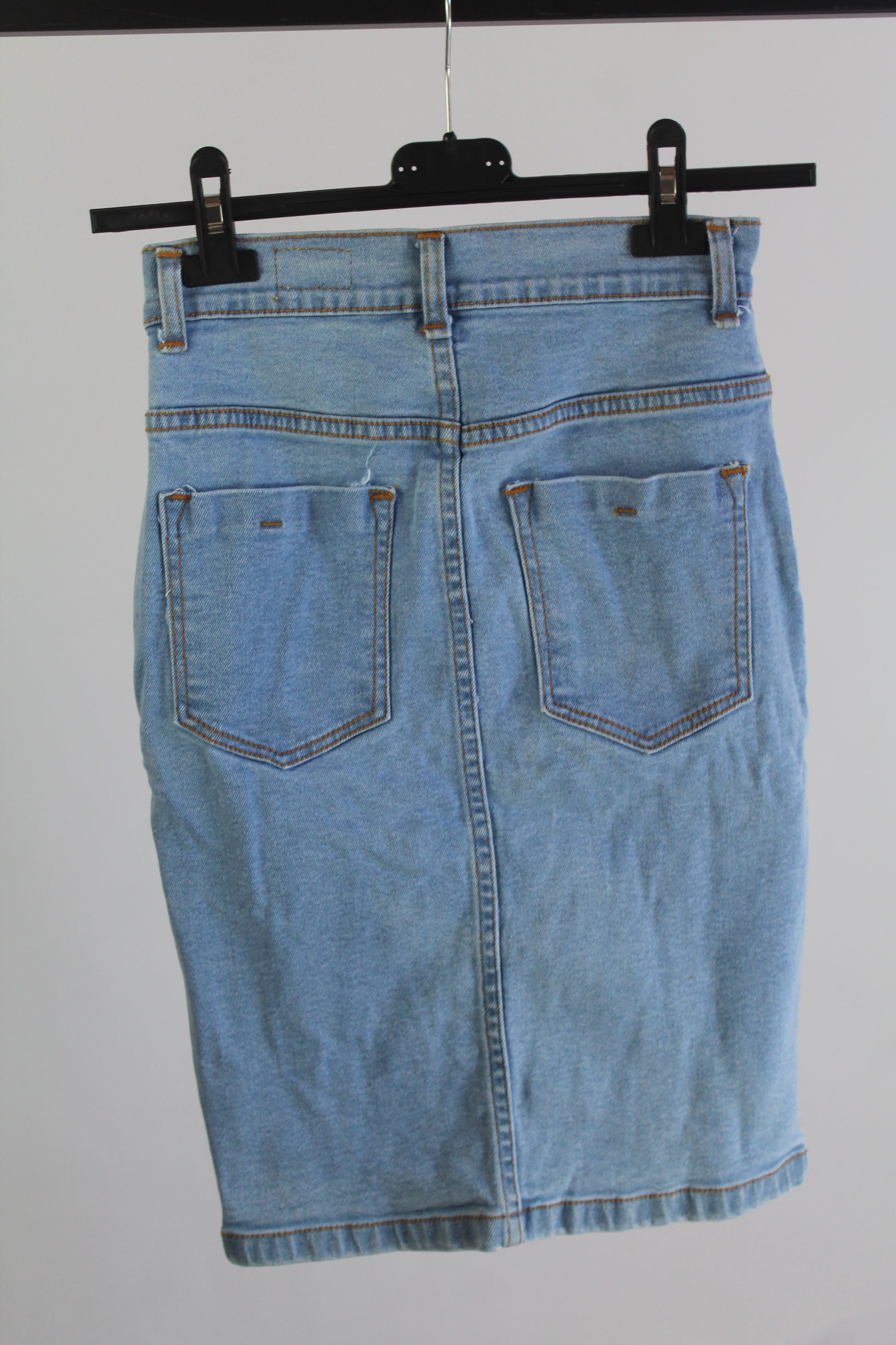 Add a fresh twist to your wardrobe with this G.V.B.D. Denim Light Wash Pencil Skirt in women’s size XS. Featuring a classic pencil silhouette crafted from soft, light wash denim, this skirt offers a flattering fit that hugs your curves while maintaining comfort. Perfect for casual days or dressed-up occasions, it pairs effortlessly with tees, blouses, or cropped tops. The versatile light wash adds a relaxed, vintage vibe to your style. Shop this must-have denim skirt now at Threndzs.