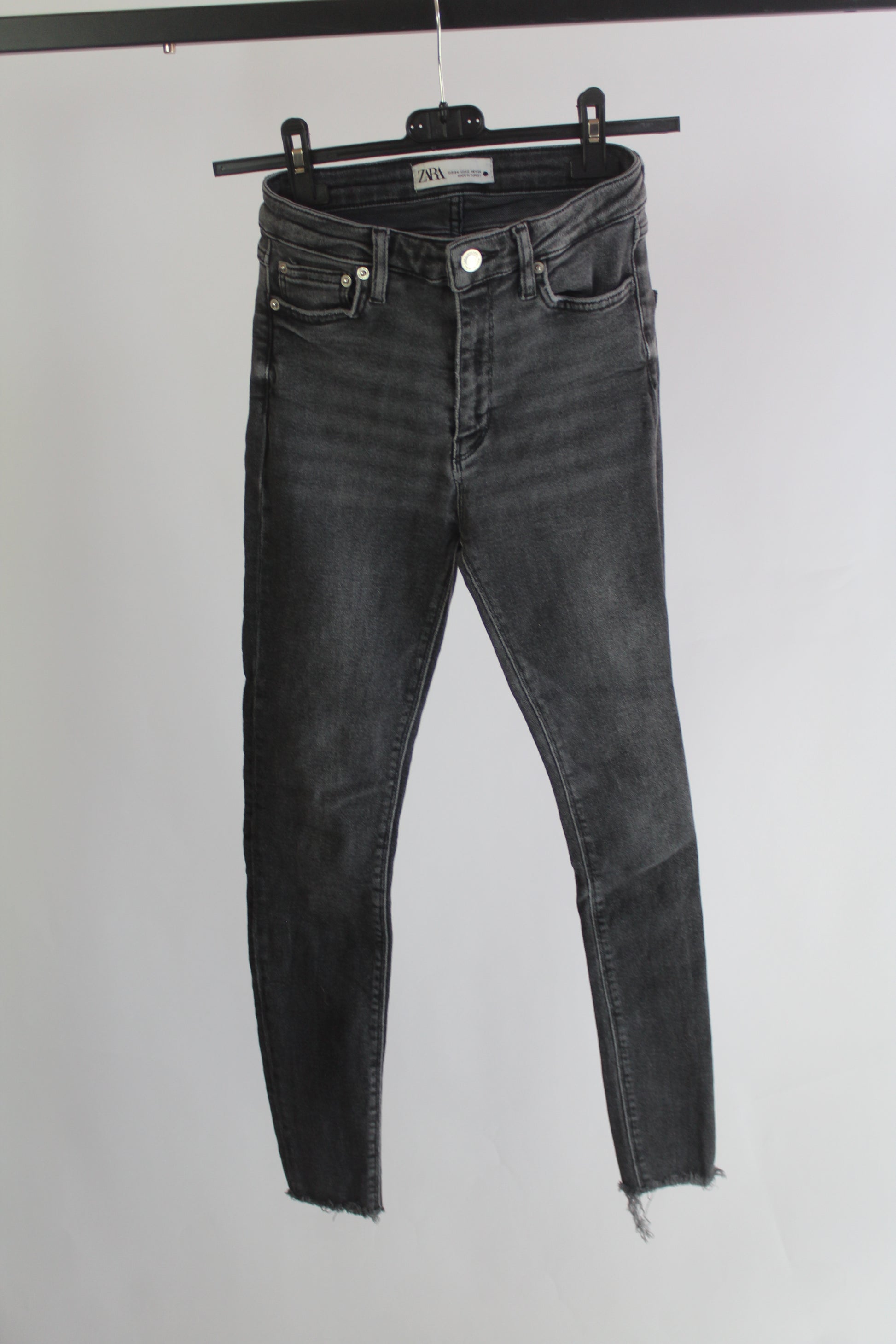 Elevate your everyday look with these Zara Women's Black Dark Wash Skinny Jeans in size 2. Featuring a sleek, form-fitting silhouette and a versatile dark wash with a subtle black tone, these jeans are perfect for day-to-night wear. Crafted from soft, stretch denim, they offer a comfortable fit that moves with you while flattering your shape. Ideal for pairing with everything from casual tees to dressy blouses, these Zara skinny jeans are a must-have wardrobe staple. Shop now at Threndzs.
