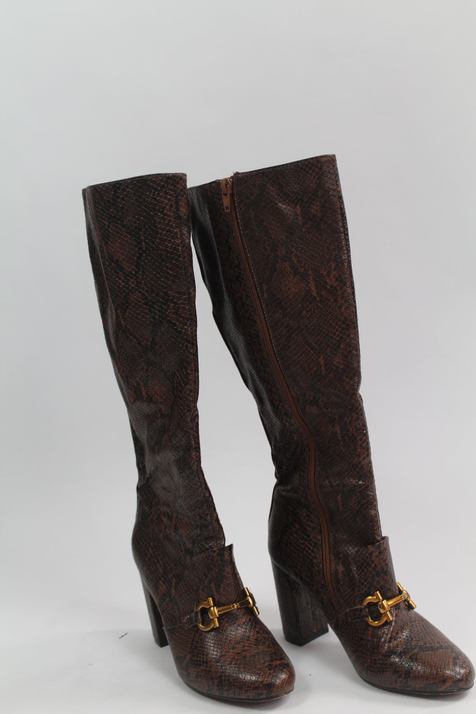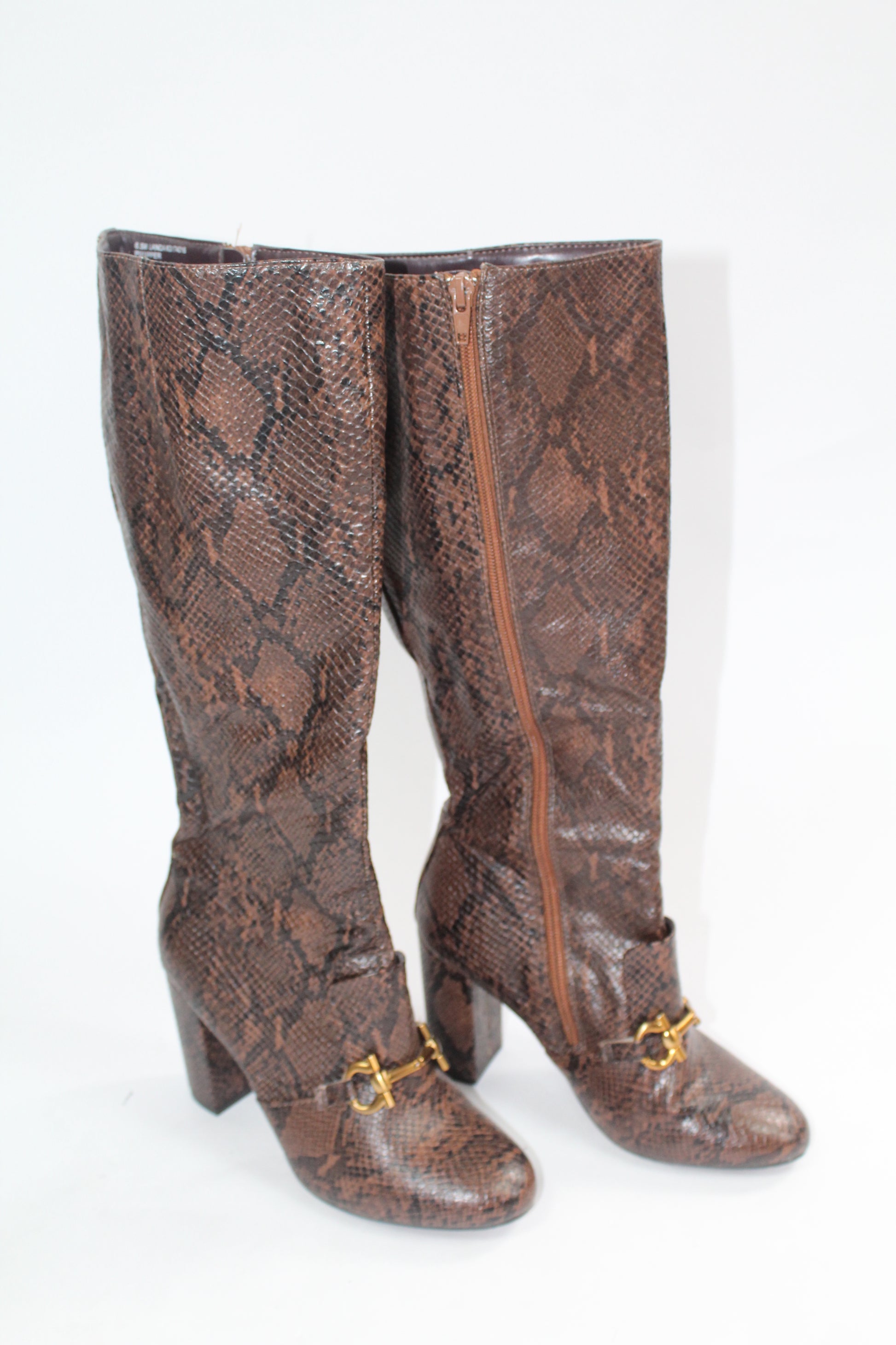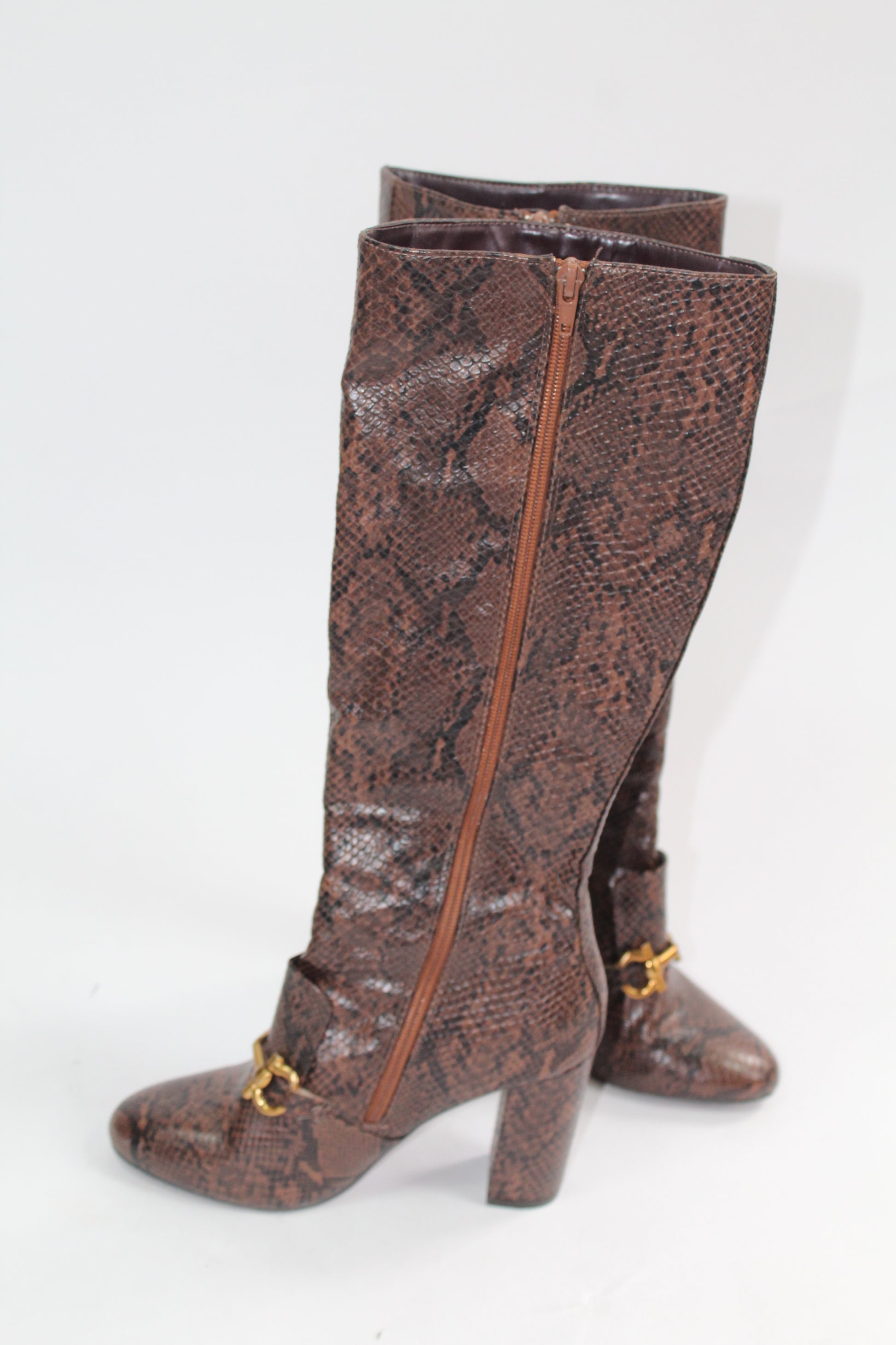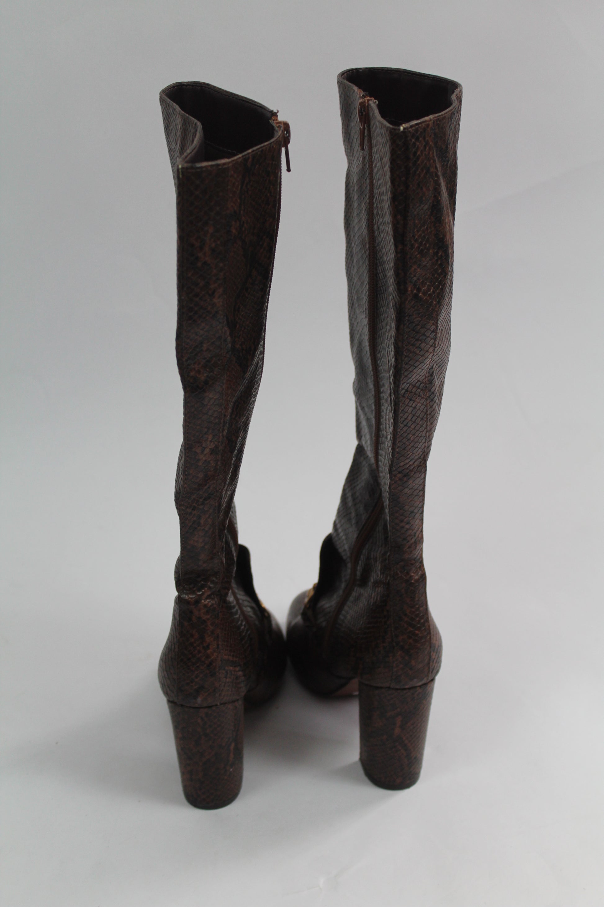 Women's Brown Pleather Snake Boots Size 6.5