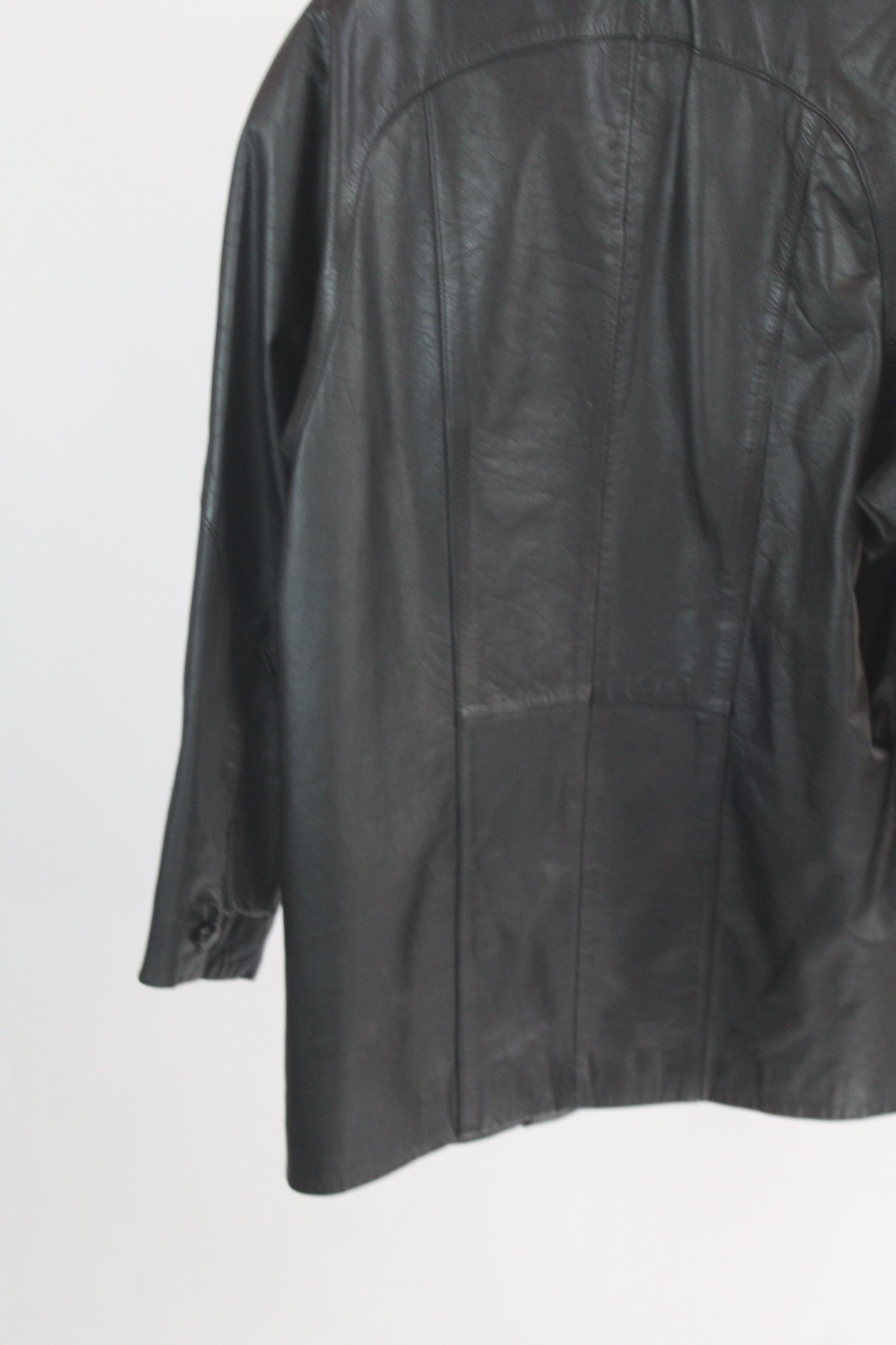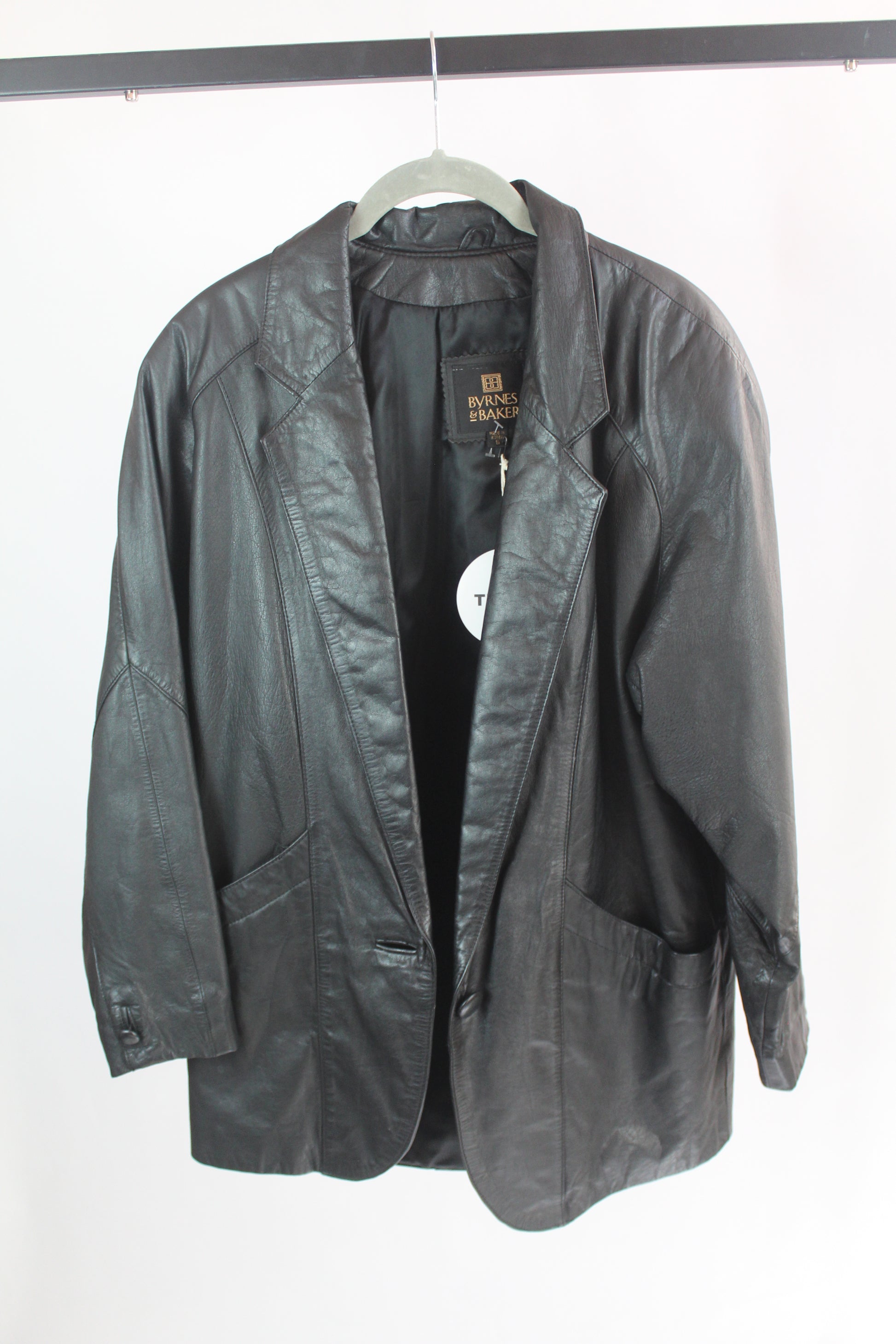 This vintage Byrnes and Blaker leather blazer in size XS blends classic tailoring with retro edge. Made with premium leather and expert structure, it’s a standout piece for any fashion-forward wardrobe.