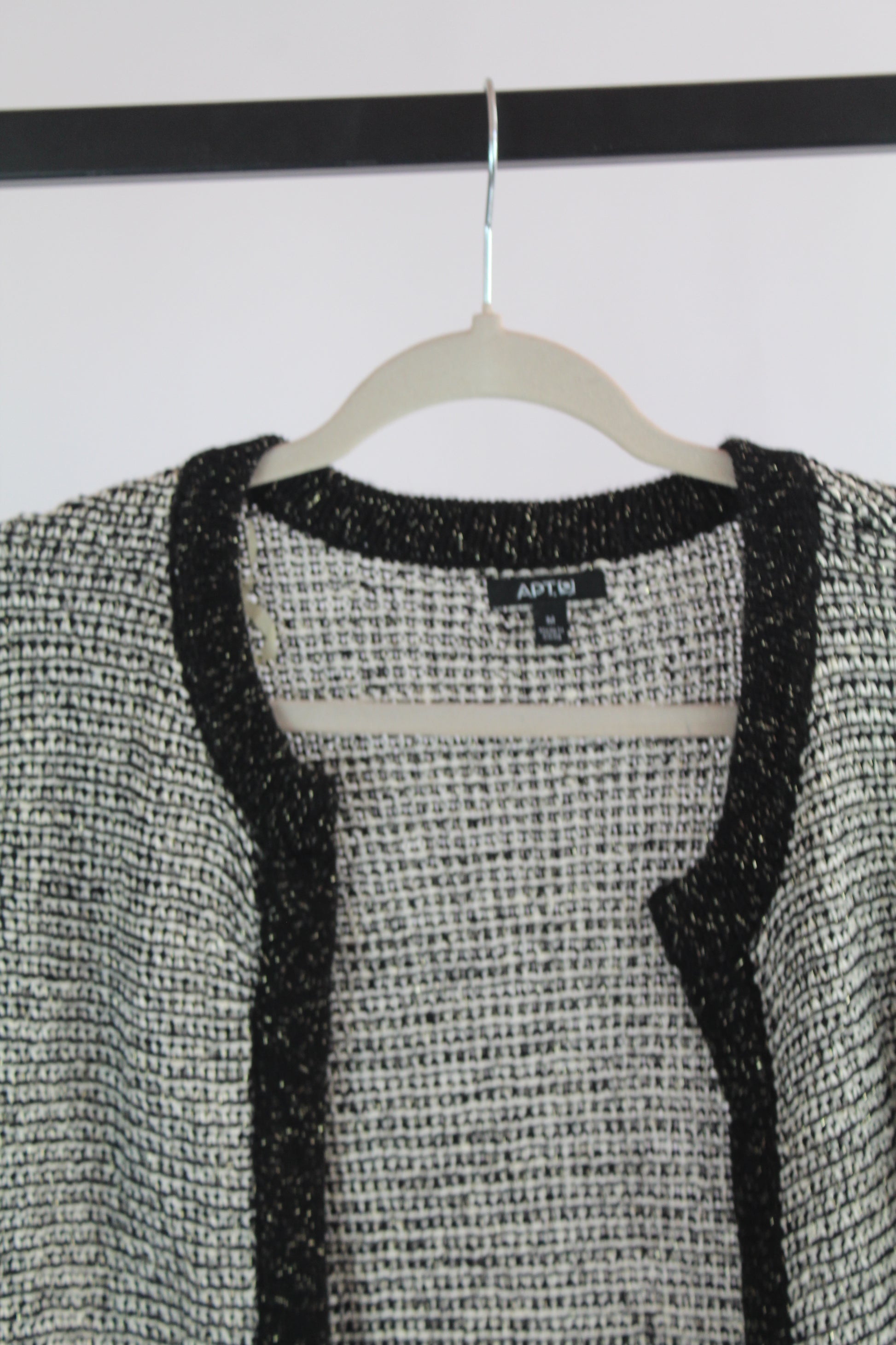 Chic and cropped, this black and white cardigan in size small is the perfect piece for transitional layering. Versatile enough for jeans or dresses, with modern edge and cozy vibes.
