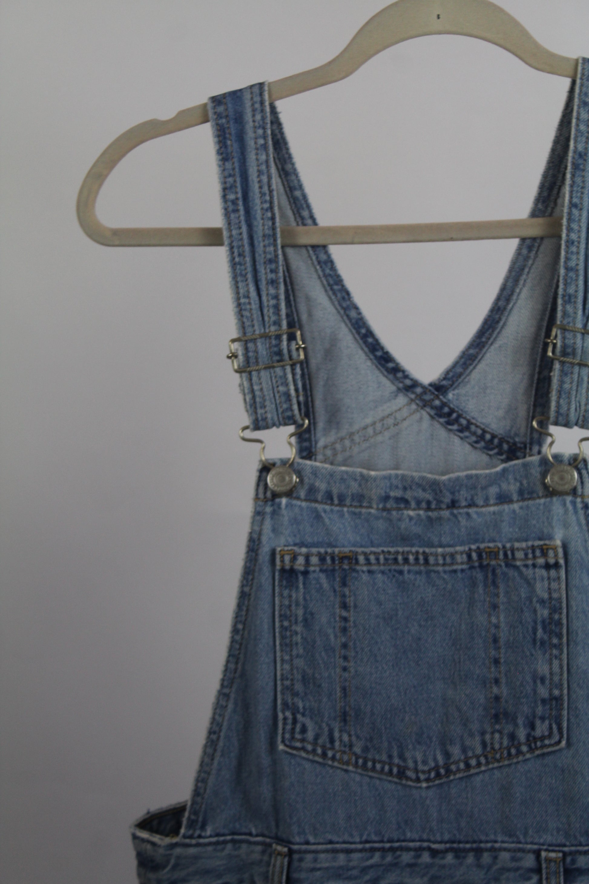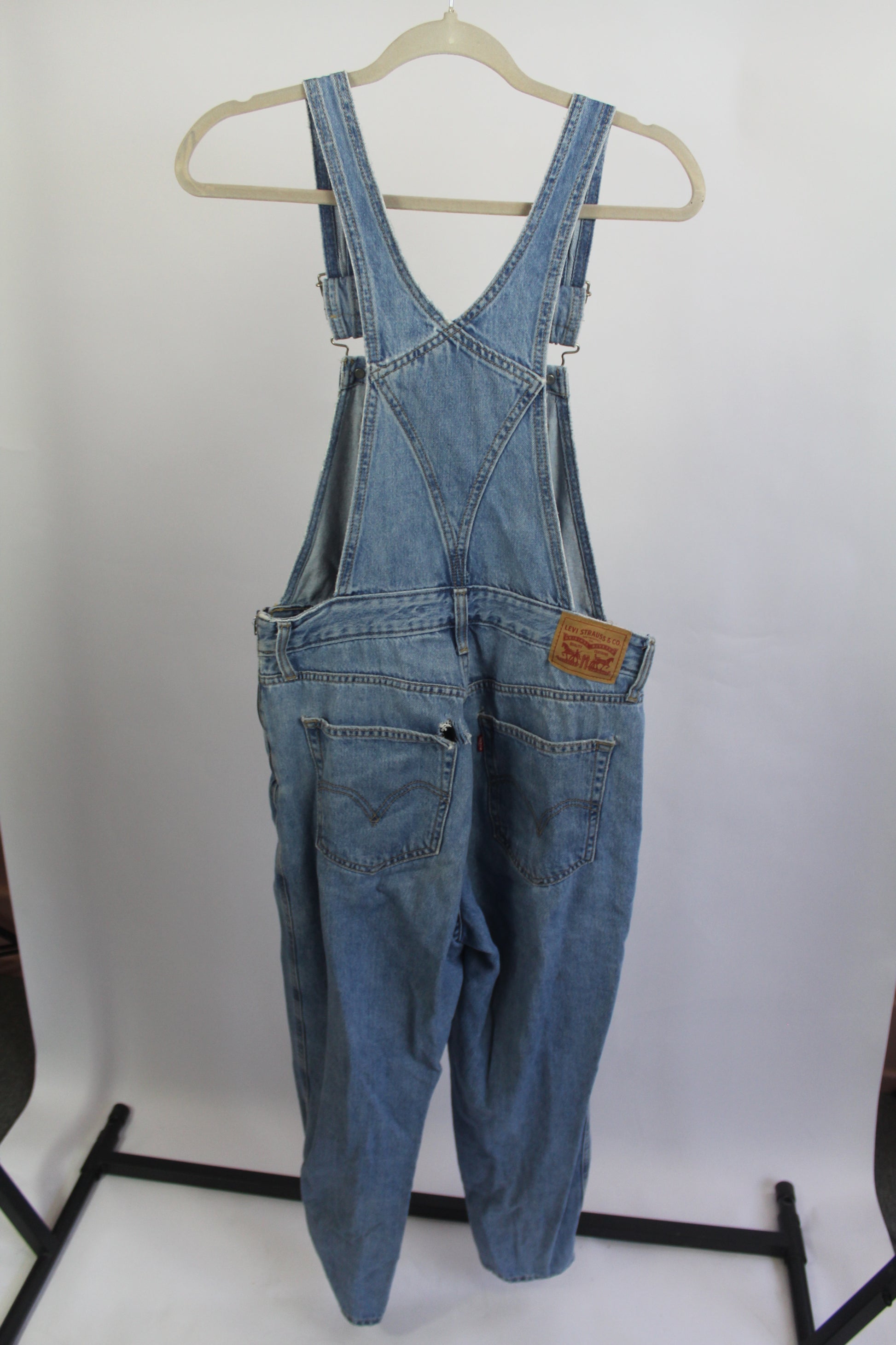 Women's Levi Denim Overalls Partially Distressed Size MediumEdgy and effortlessly cool, these partially distressed Levi denim overalls in size medium are a versatile staple. With signature Levi's details, adjustable straps, and a comfy fit, they're perfect for layering and casual styling.
