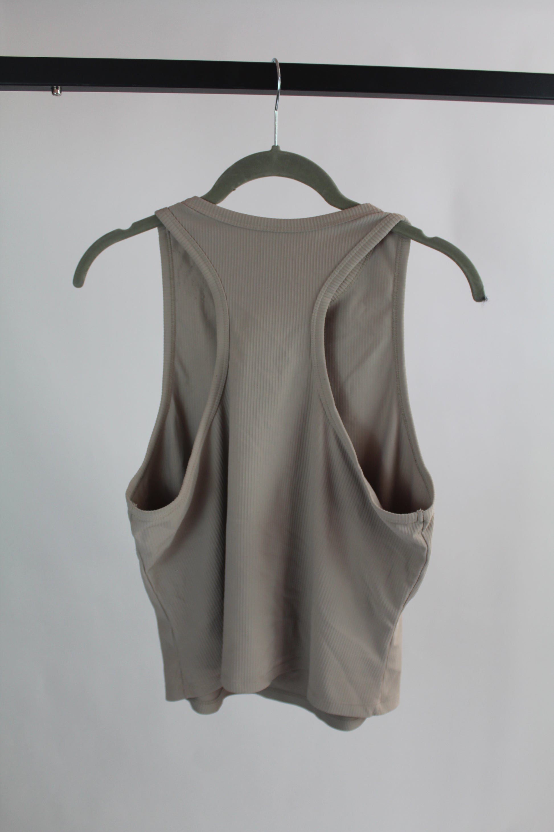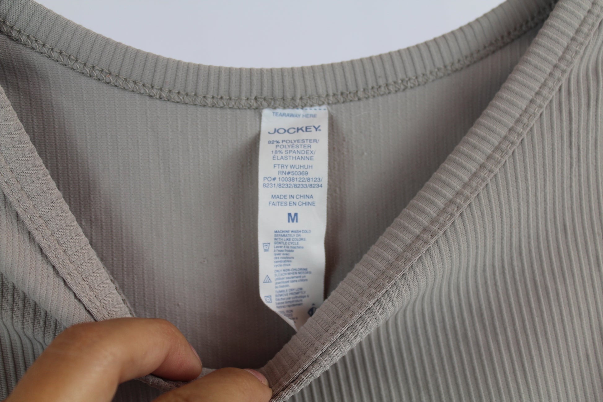 This tan Jockey athletic top in size medium is all about movement and ease. Made for workouts or athleisure, it offers breathable stretch and minimalist style for active days.