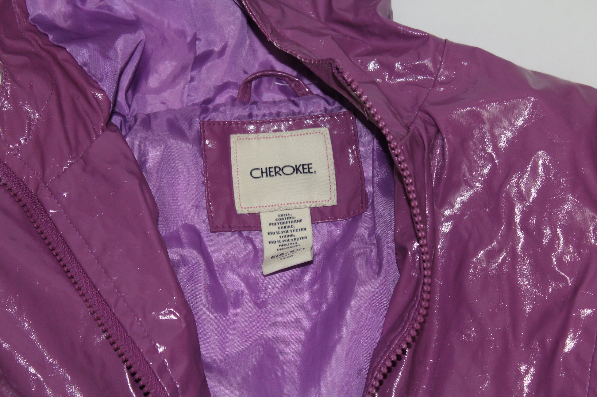Girls’ Cherokee Purple Glossy Rain Jacket – Size Medium