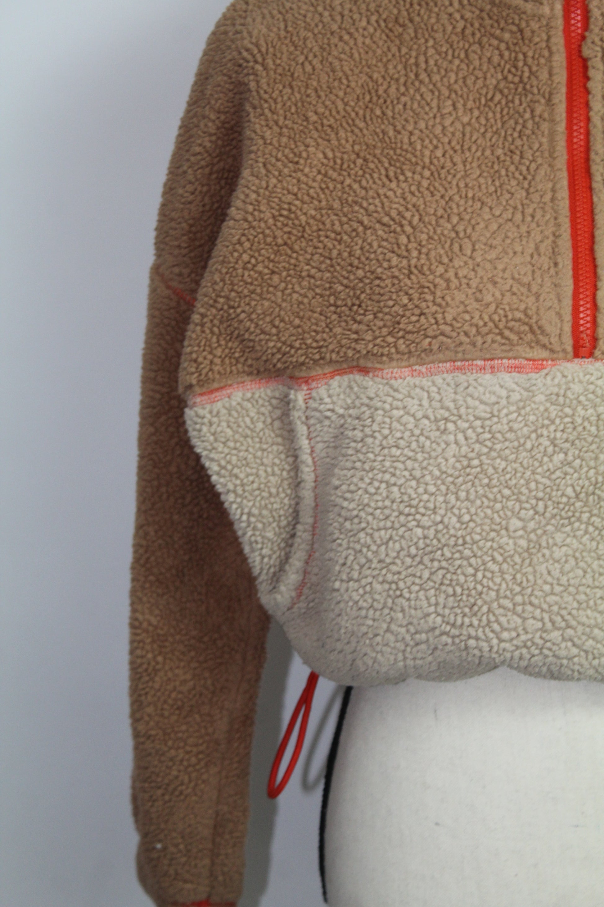 Women’s Tan & Cream Colorblock Sherpa Quarter-Zip Pullover – Size Small