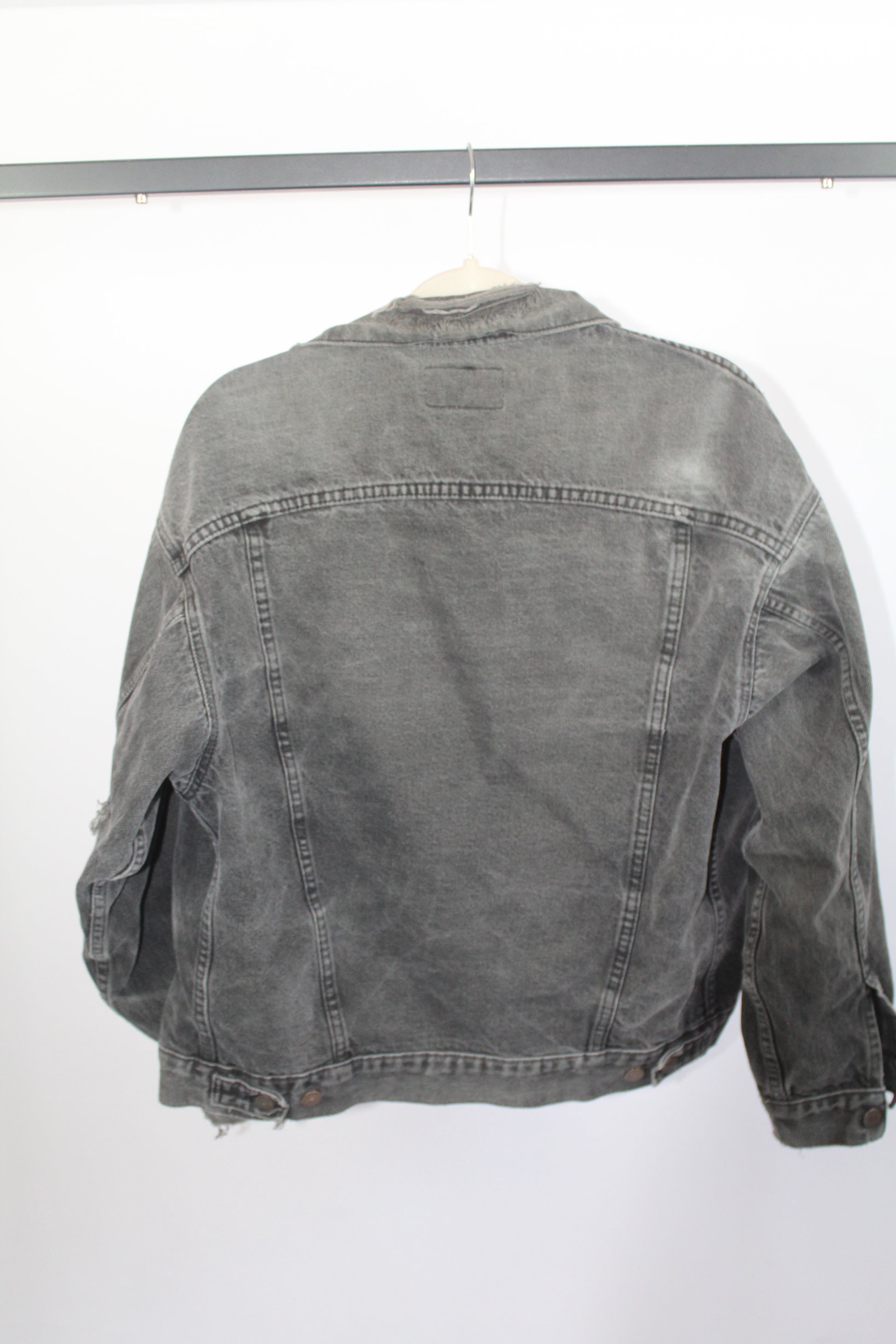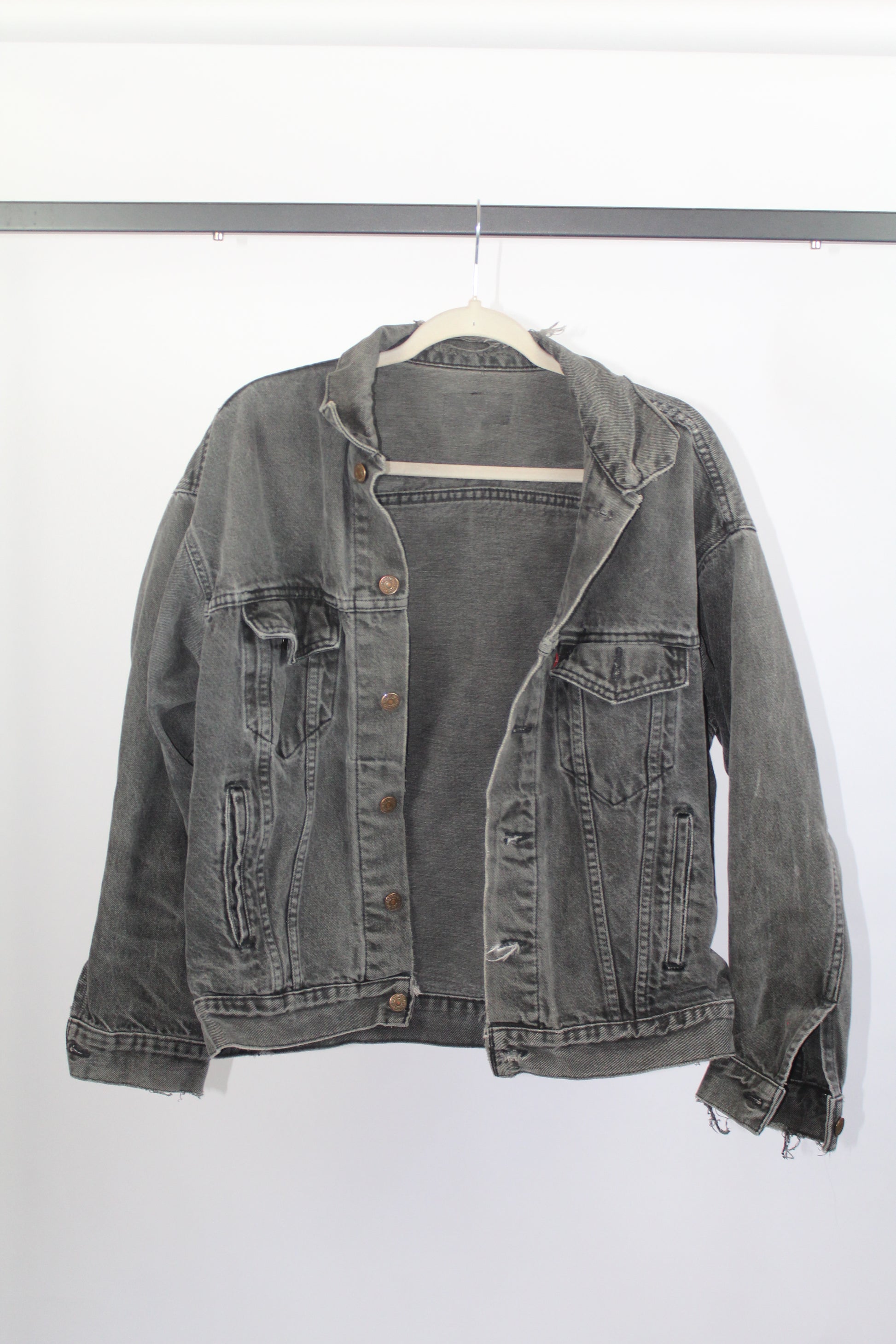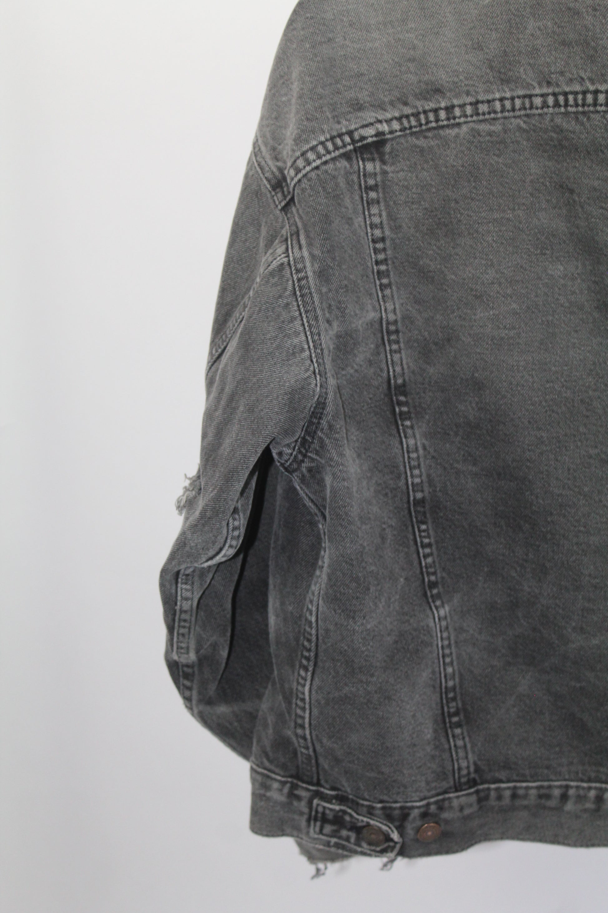 Women's Vintage Levi's Dark Grey Distressed Denim Jacket Size Medium
