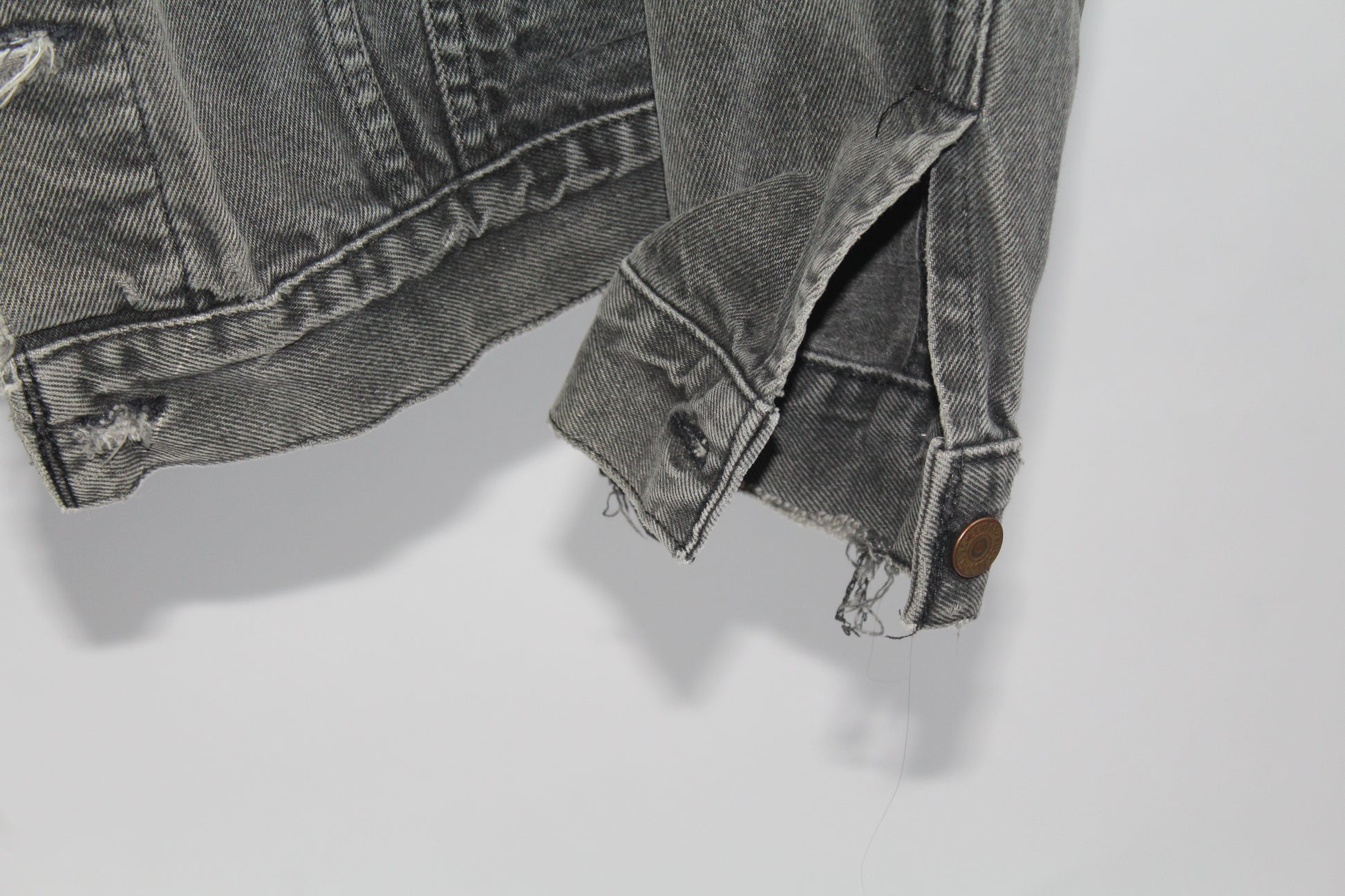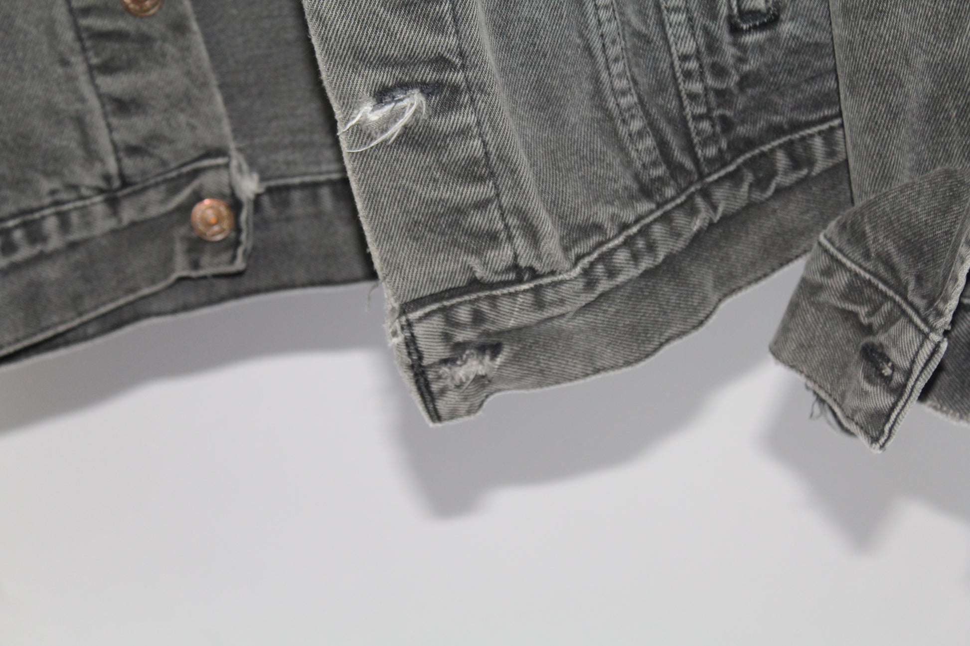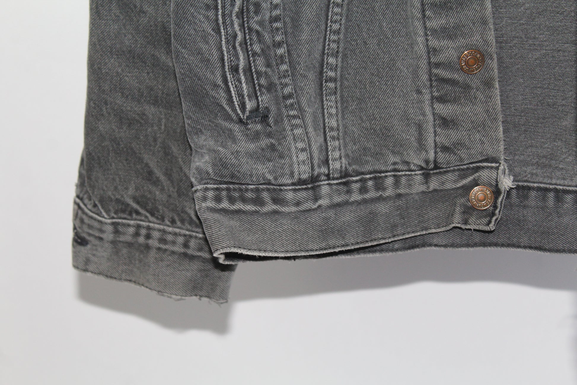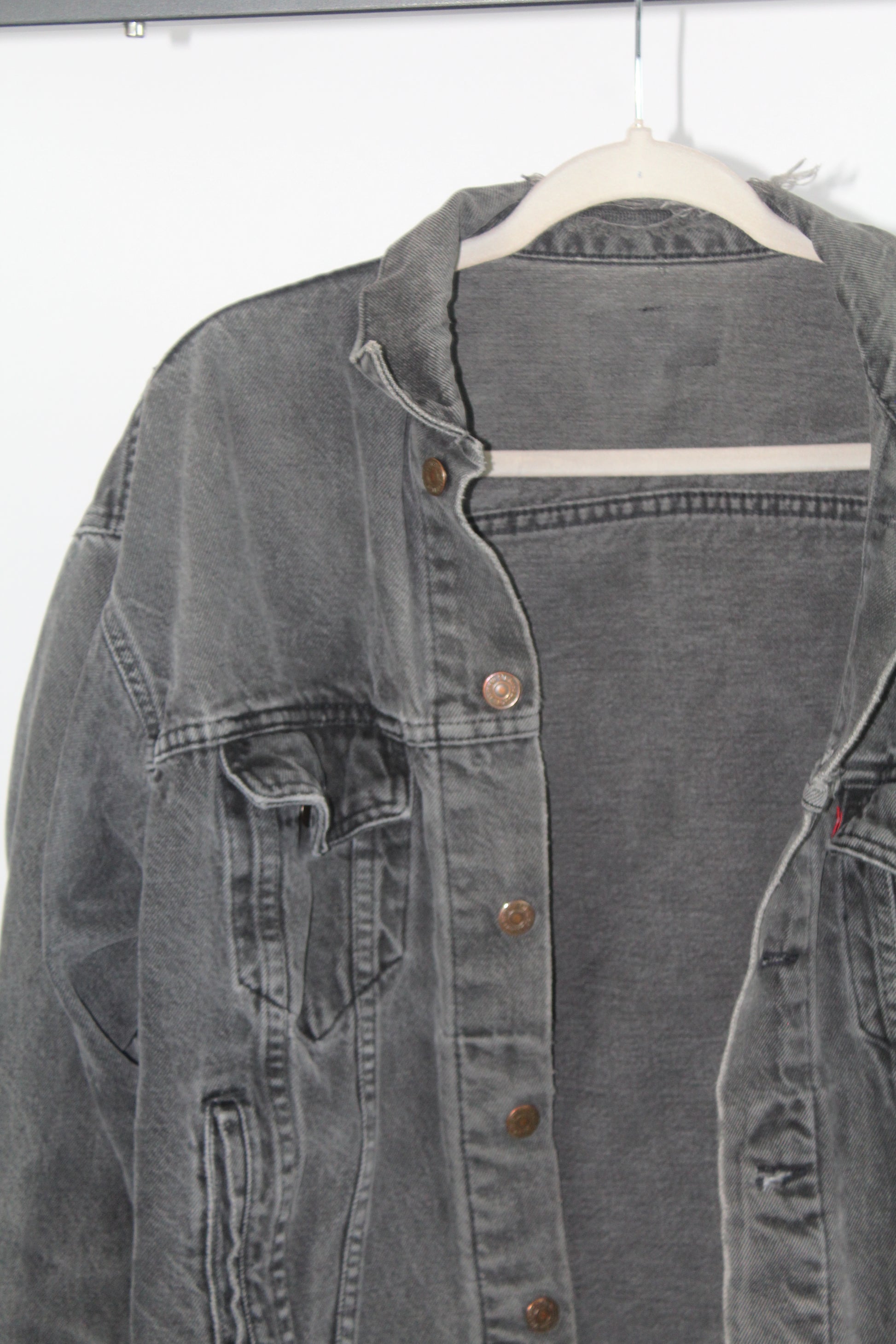 Women's Vintage Levi's Dark Grey Distressed Denim Jacket Size Medium