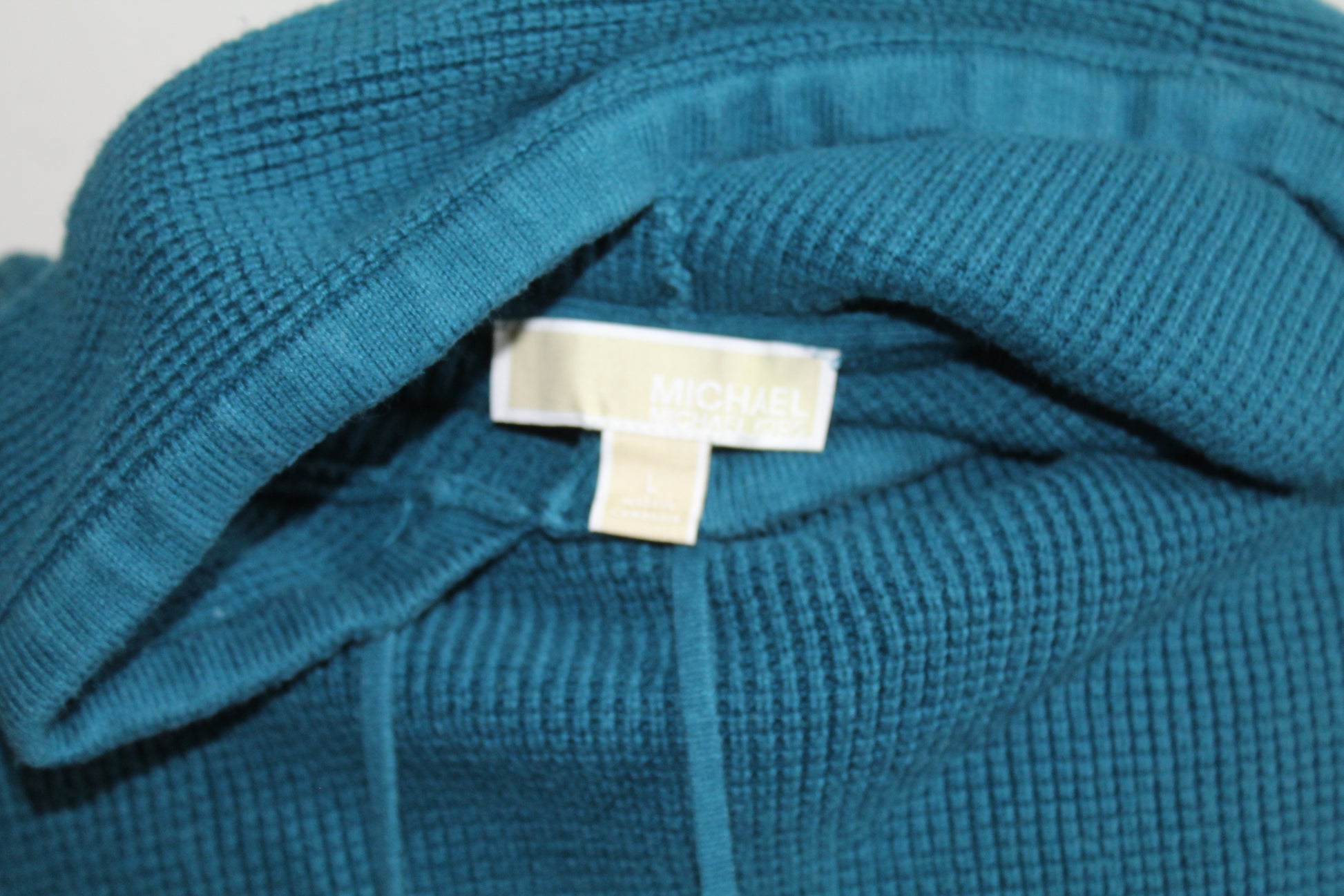 Women’s Michael Kors Teal Ribbed Knit Hoodie – Size Large