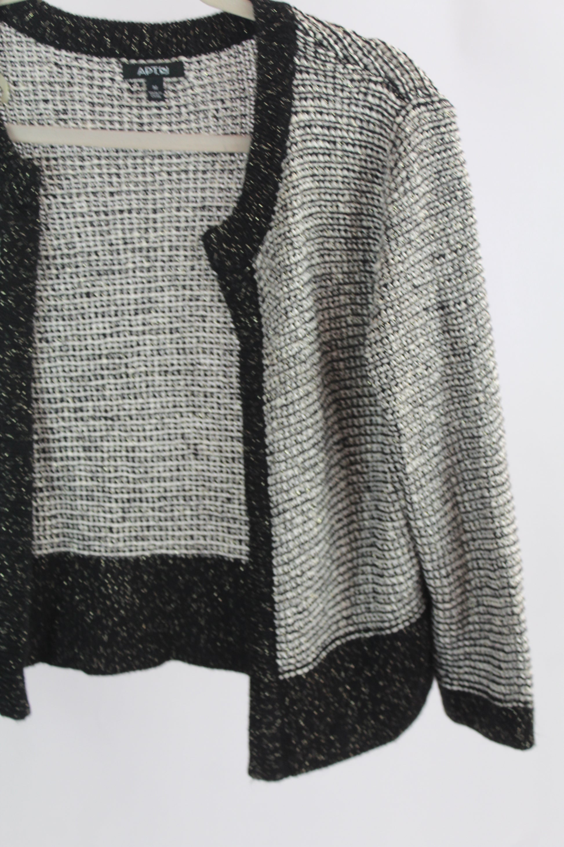 Add a touch of effortless style to your wardrobe with this chic Apt. 9 black and white cardigan. Designed for comfort and versatility, this medium-weight knit features a classic color palette that pairs perfectly with jeans, skirts, or workwear.