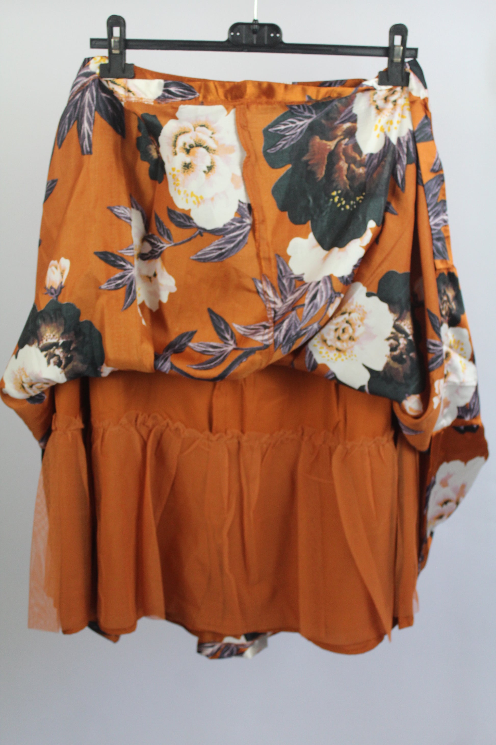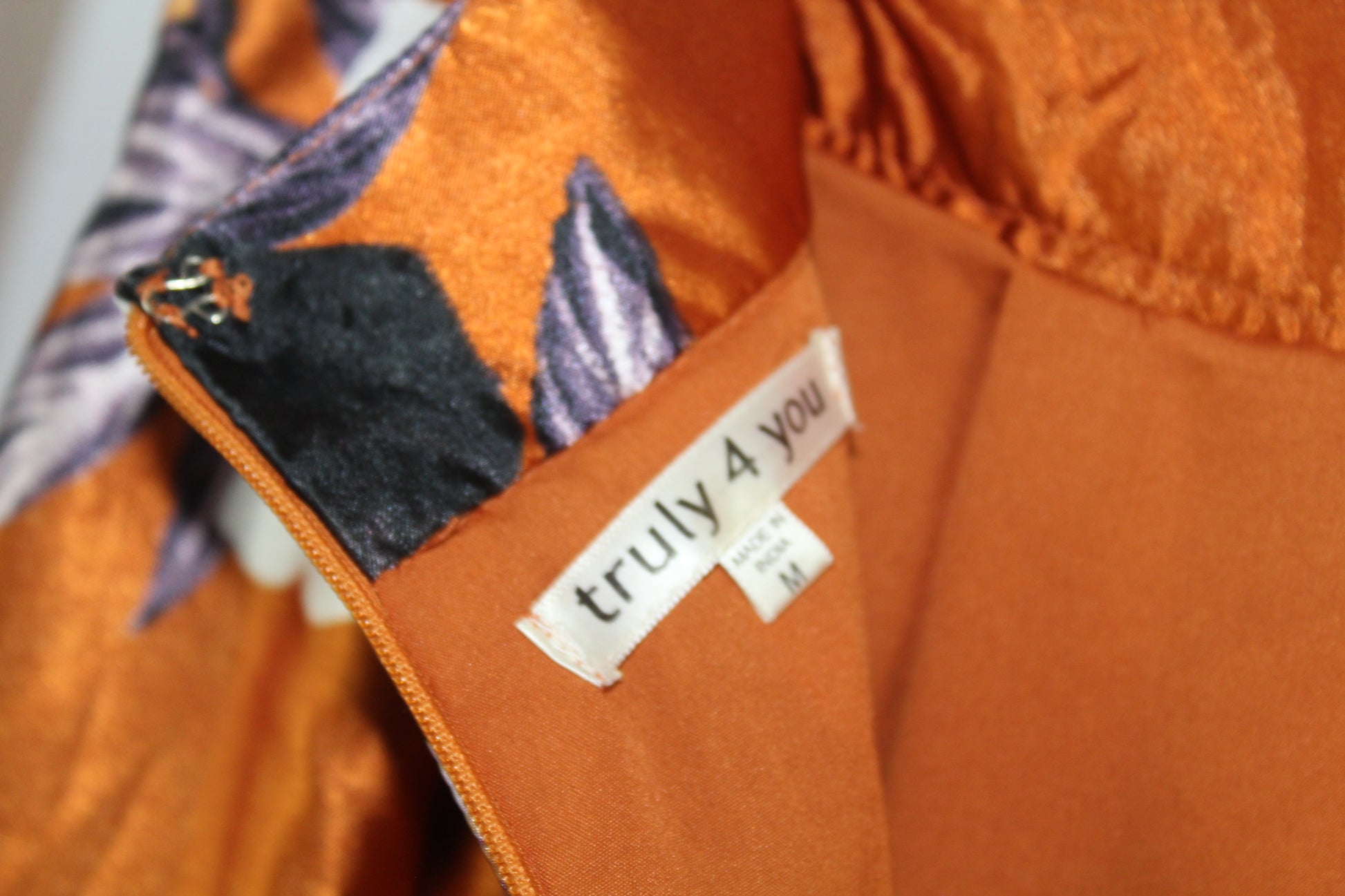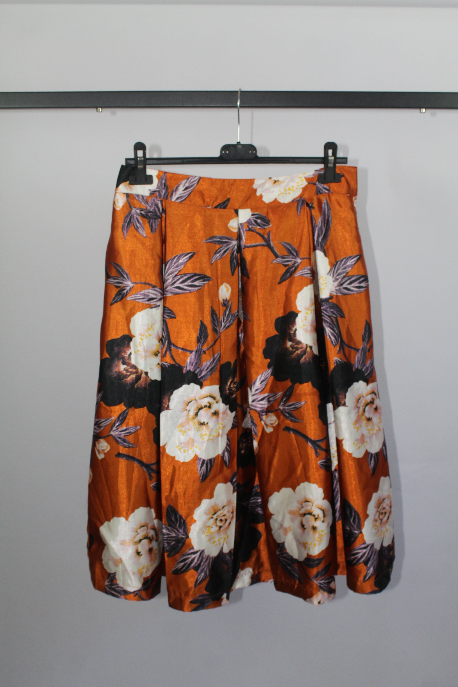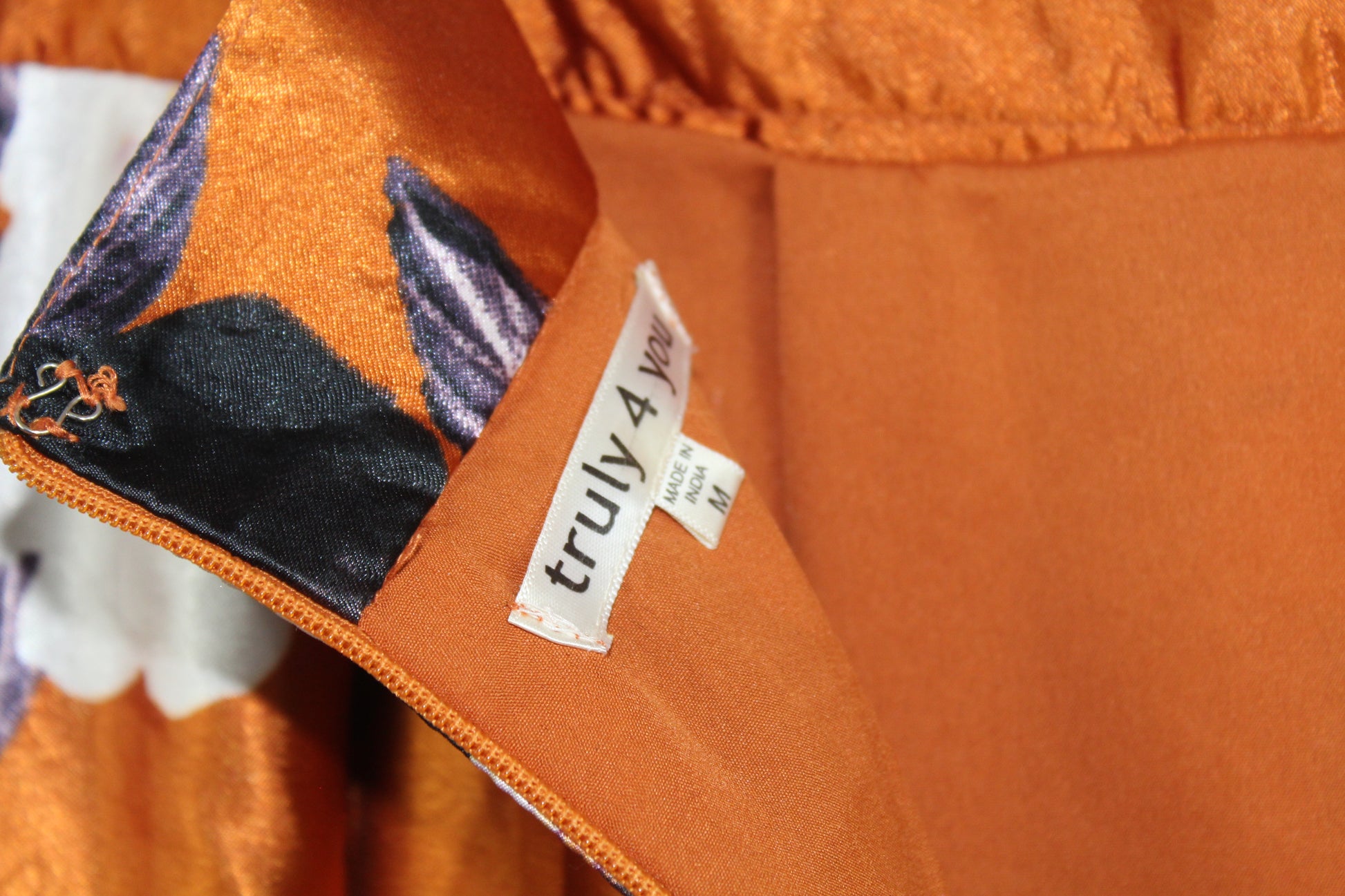 Women's Midi Orange Floral Skirt Size MAdd a pop of color with this orange floral midi skirt in size medium. Feminine, vibrant, and easy to style.